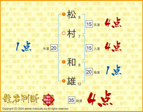 松村和雄さんの天運は15画の4点!
