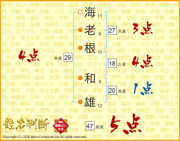 海老根和雄さんの総運は47画の5点!
