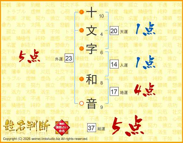 十文字和音さんの総運は37画の5点!