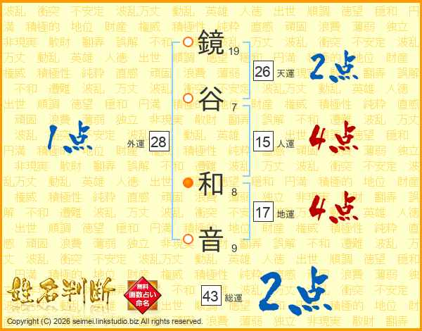 鏡谷和音さんの天運は26画の2点!