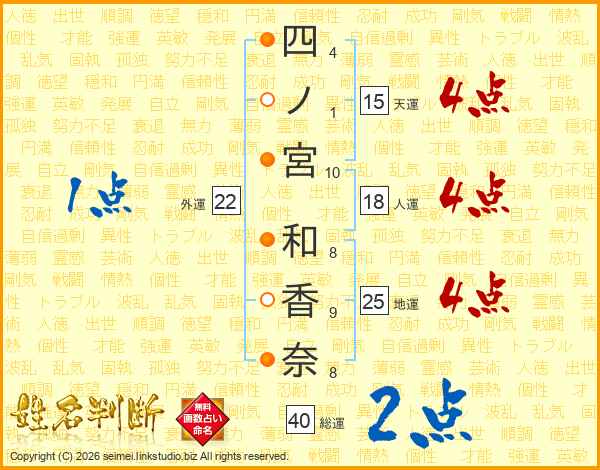 四ノ宮和香奈さんの総運は40画の2点!