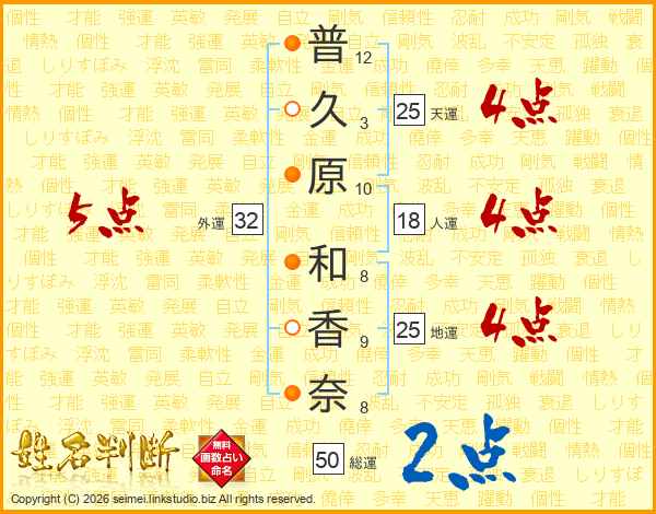 普久原和香奈さんの地運は25画の4点!
