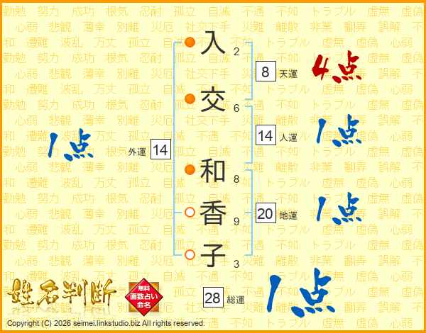 入交和香子さんの総運は28画の1点!