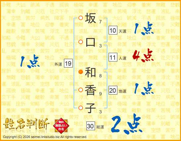 坂口和香子さんの人運は11画の4点!