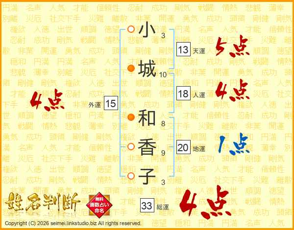 小城和香子さんの総運は33画の4点!
