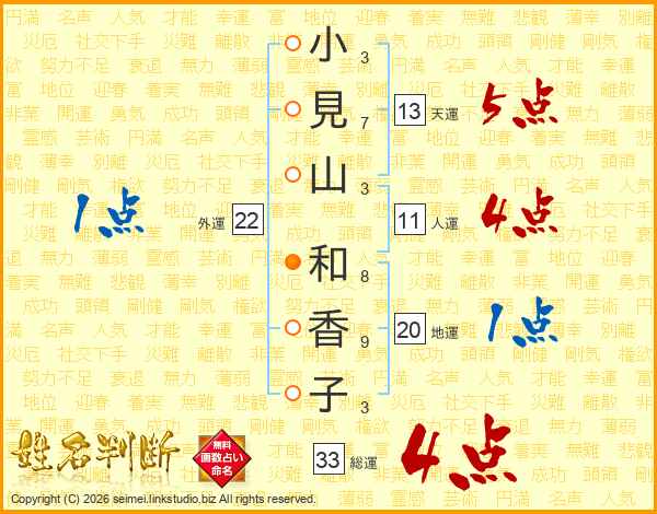 小見山和香子さんの総運は33画の4点!