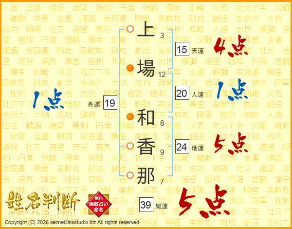 上場和香那さんの総運は39画の5点!