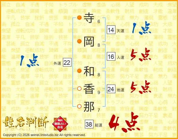 寺岡和香那さんの総運は38画の4点!
