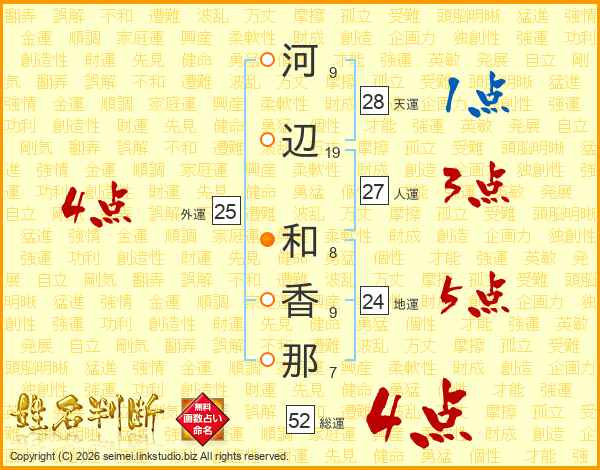 河辺和香那さんの総運は52画の4点!