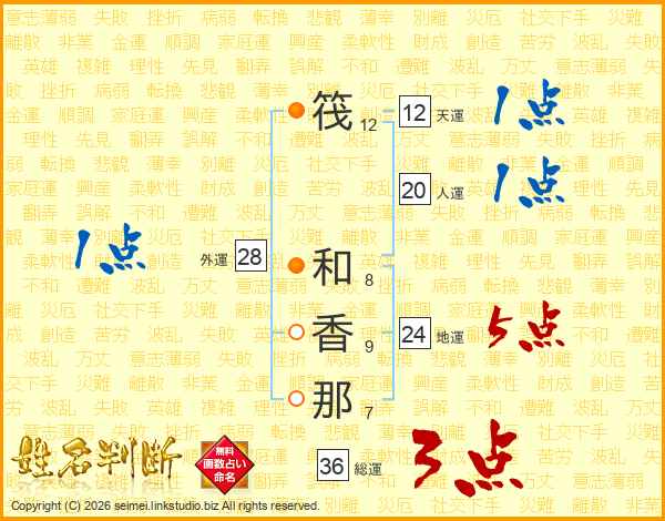 筏和香那さんの総運は36画の3点!