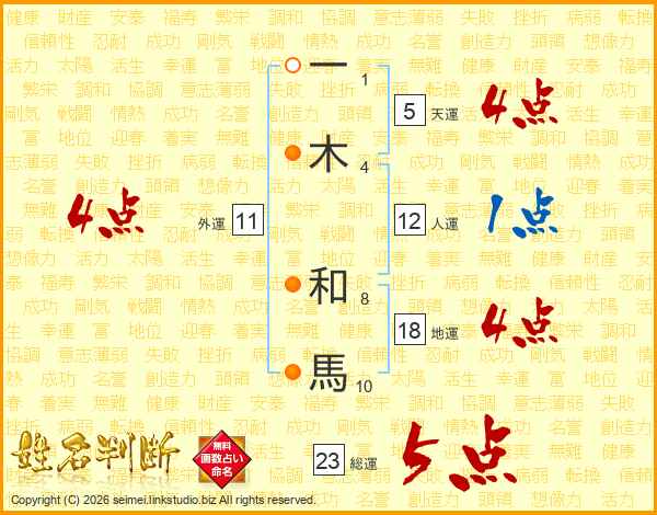 一木和馬さんの総運は23画の5点!