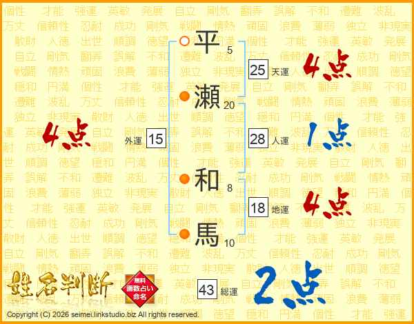 平瀬和馬さんの天運は25画の4点!