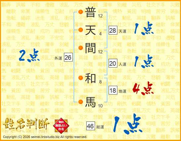 普天間和馬さんの総運は46画の1点!