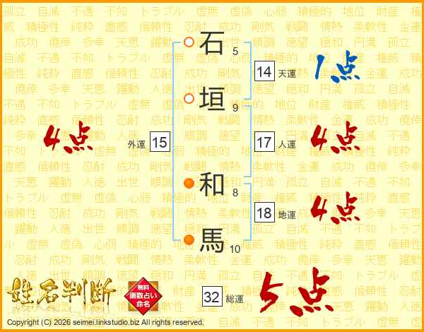 石垣和馬さんの総運は32画の5点!