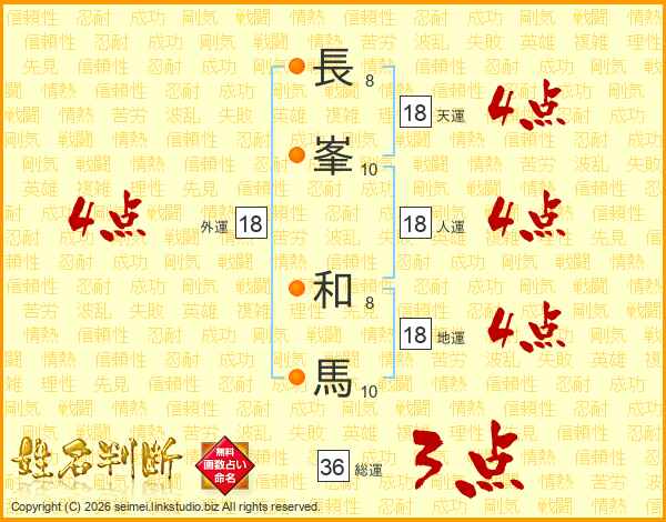長(8画)峯(10画) 和(8画)馬(10画)