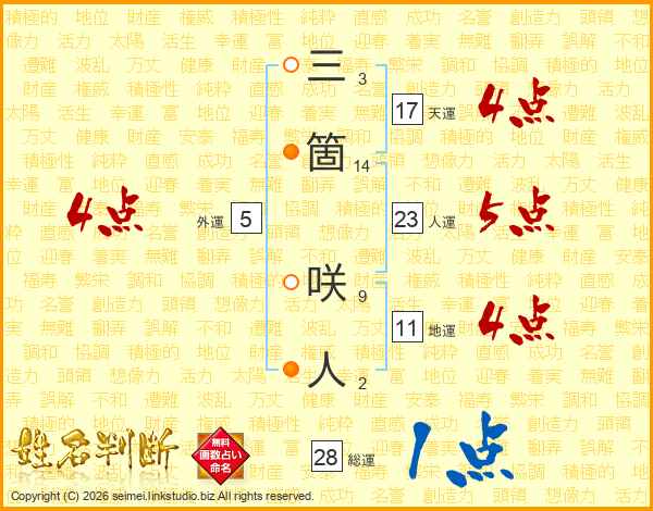 三箇咲人さんの人運は23画の5点!