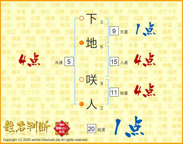 下地咲人さんの総運は20画の1点!
