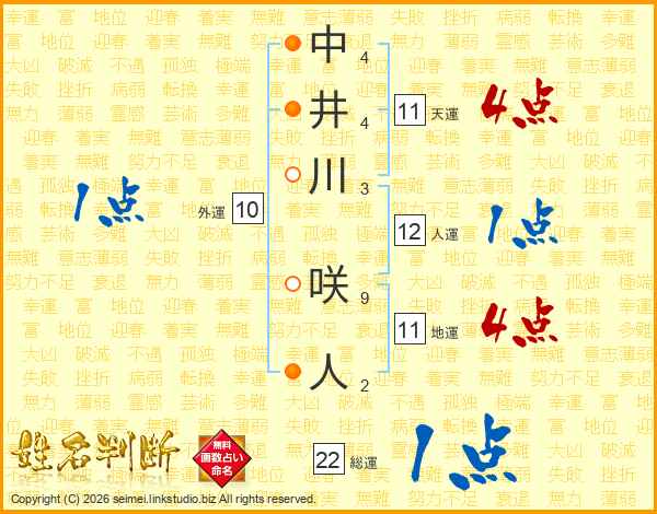 中井川咲人さんの天運は11画の4点!