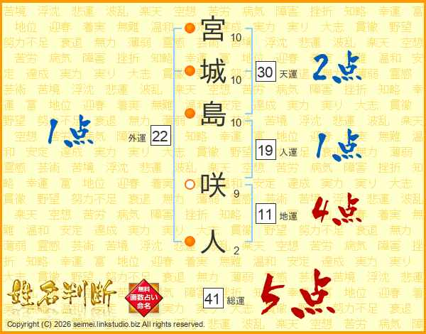 宮城島咲人さんの総運は41画の5点!