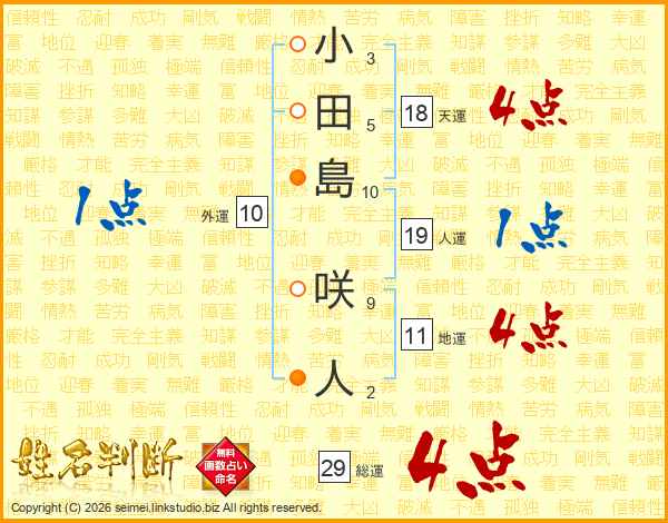小田島咲人さんの総運は29画の4点!