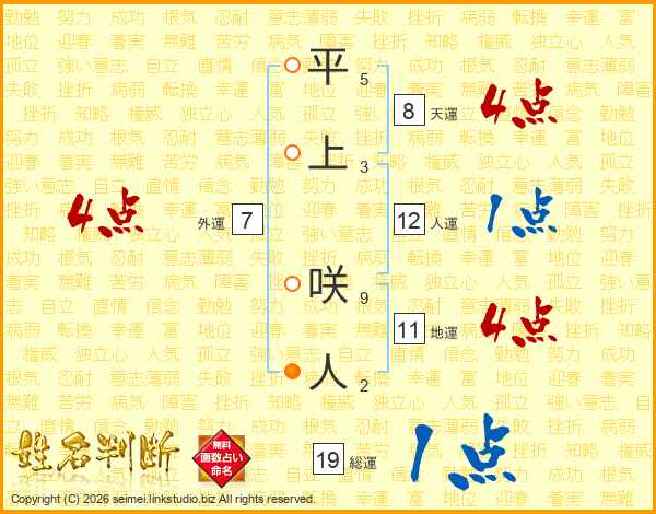 平上咲人さんの外運は7画の4点!