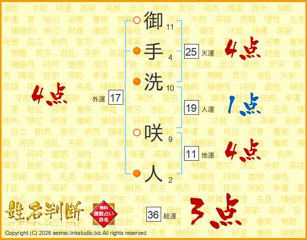 御手洗咲人さんの総運は36画の3点!
