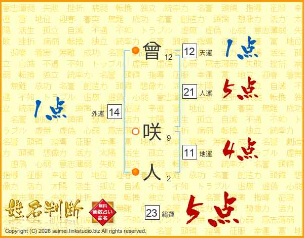 曾咲人さんの総運は23画の5点!