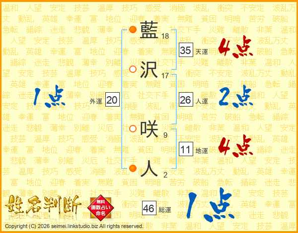 藍沢咲人さんの人運は26画の2点!