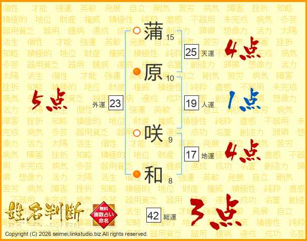 蒲原咲和さんの天運は25画の4点!