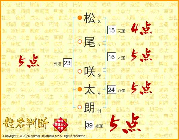 松尾咲太朗さんの総運は39画の5点!