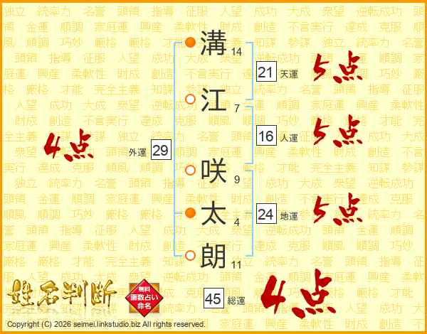 溝江咲太朗さんの総運は45画の4点!