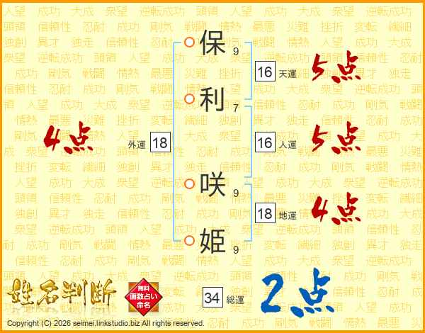 保(9画)利(7画) 咲(9画)姫(9画)