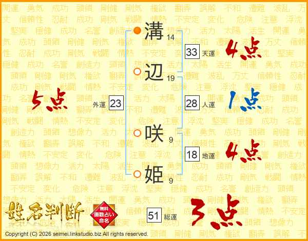 溝辺咲姫さんの総運は51画の3点!