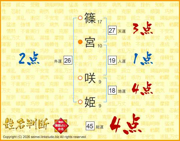 篠宮咲姫さんの外運は26画の2点!