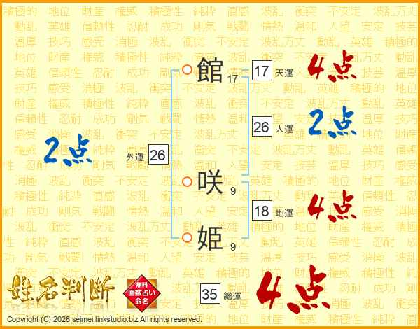 館咲姫さんの総運は35画の4点!