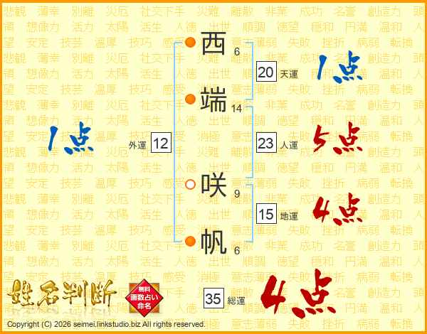西端咲帆さんの総運は35画の4点!