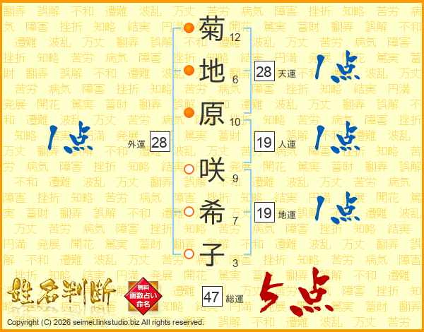 菊地原咲希子さんの総運は47画の5点!