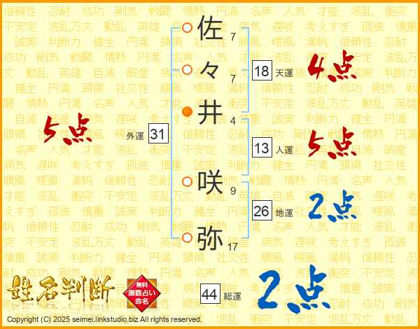 佐々井咲弥さんの総運は44画の2点!