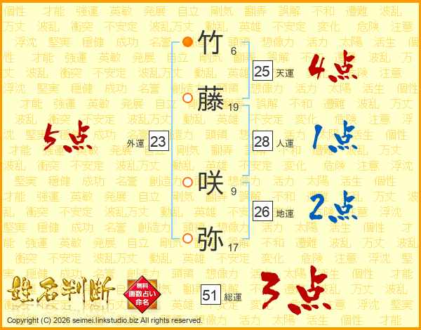 竹藤咲弥さんの総運は51画の3点!