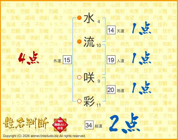 水流咲彩さんの総運は34画の2点!
