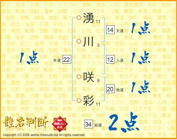 湧川咲彩さんの総運は34画の2点!