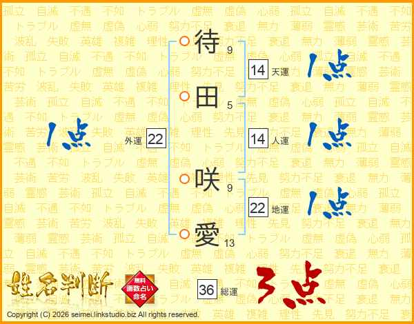 待田咲愛さんの天運は14画の1点!