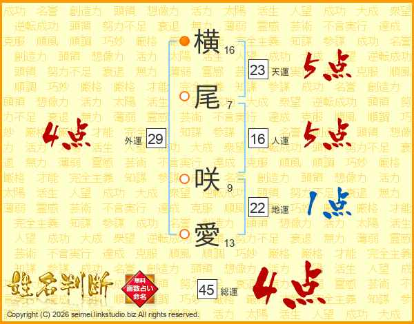 横尾咲愛さんの総運は45画の4点!
