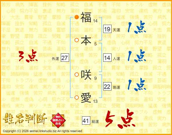 福本咲愛さんの総運は41画の5点!