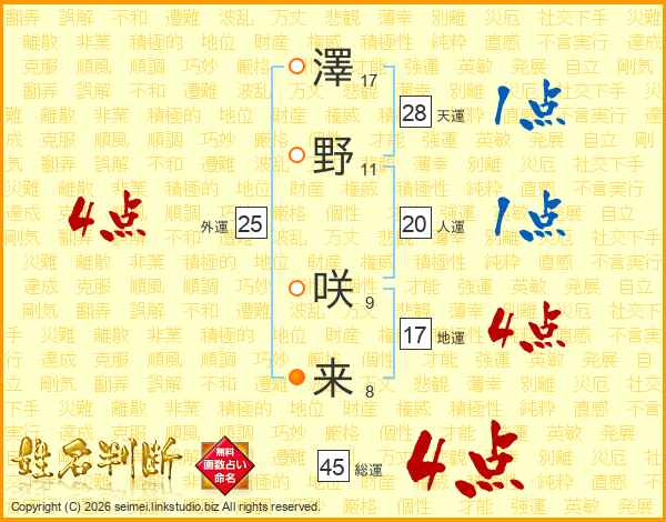 澤野咲来さんの総運は45画の4点!