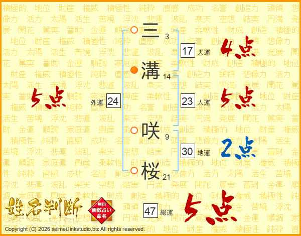 三溝咲桜さんの総運は47画の5点!