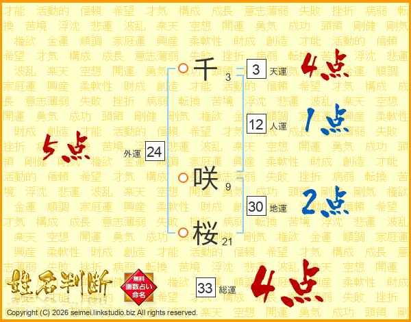 千咲桜さんの地運は30画の2点!