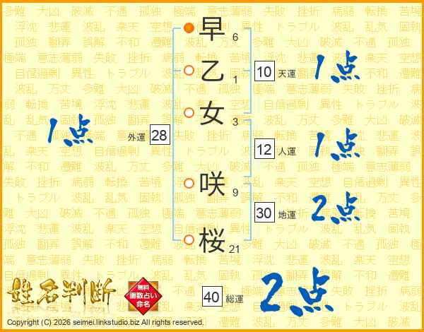 早乙女咲桜さんの地運は30画の2点!