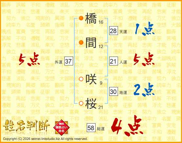 橋間咲桜さんの外運は37画の5点!
