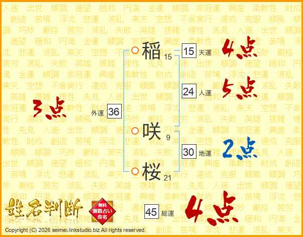 稲咲桜さんの総運は45画の4点!